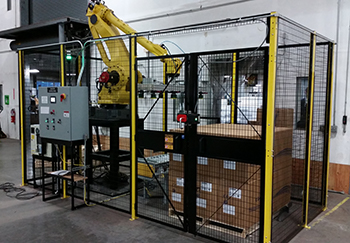 Robot Palletizer specializes in the design and integration of robot palletizing equipment. Robot Palletizer, LLC has over 15 years experience in all aspects of the design through manufacturing of equipment for the food, paint and coatings, chemical, petroleum, personal care and beverage industries.